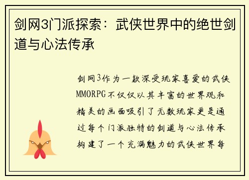 《伏魔者剑仙卡揭秘:强力技能与无敌战力的完美结合》这篇文章将深入解析伏魔者剑仙卡这一角色的独特设计,并通过四个方面详细阐述其强力技能与无敌战力的完美结合。伏魔者剑仙卡作为一张备受关注的卡片,凭借其强大的技能和出色的战力,在游戏中拥有不容小觑的优势。文章将从技能解析、战力提升、战斗策略及卡牌搭配等方面...